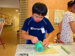 画像や展示品を通してお話を伺いました。難しいお話でしたが、真剣に耳を傾けて聞いている姿にさすが6年生だと感じたところです。また、子ども達は、土器の立体パズルや模様付けの体験もさせていただき、夢中になって楽しんで取り組んでいました。