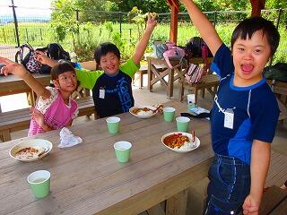 カレー班・ご飯班・火おこし班の3グループに分かれ、協力し合いながら美味しいカレーを作って食べました。とても美味しそうに笑みを浮かべながら食べていた子ども達です。