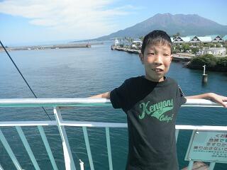 そして、フェリーにも乗りました。とても大きな桜島を目の前にして、あまりの大きさにびっくりしている様子でした。