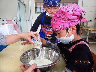 10月は学級でホットケーキづくりをしました。ボールに牛乳を入れたり、ホットケーキミックスの粉を混ぜたりする作業を子どもたちが楽しそうに行っていました。ホットプレートで焼きあがるのを見ながら、「おお!」と声を出して完成を待ちわびる姿が印象的でした。完成したホットケーキは蜂蜜をかけてみんなで食べました。すごく美味しかったようでおかわりの分もぺろりと平らげてしまいました。