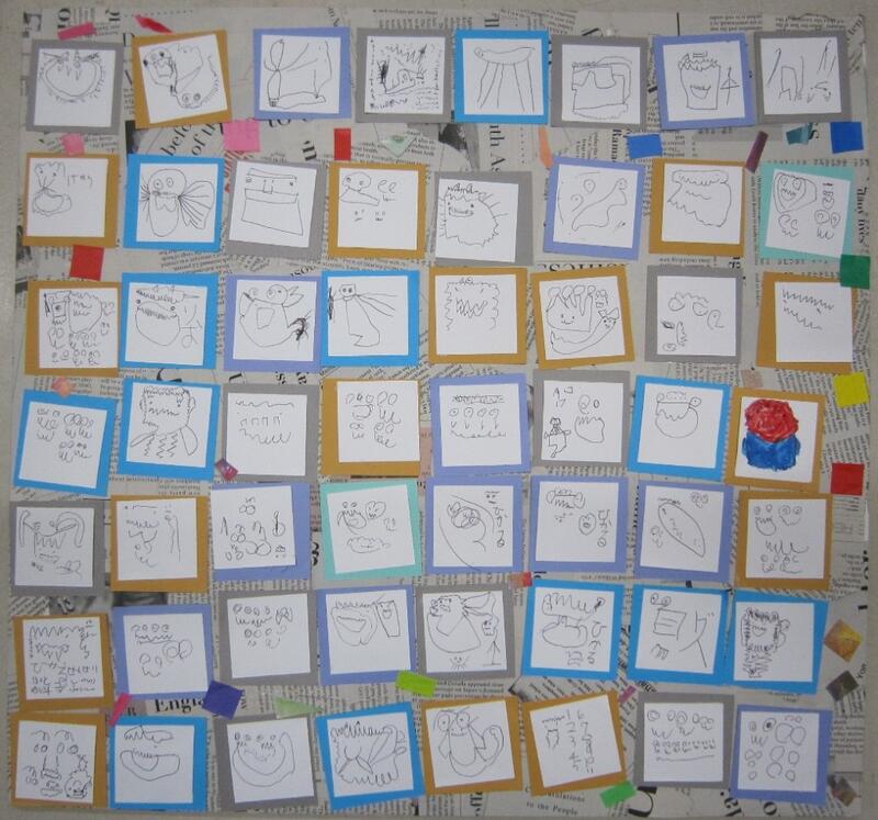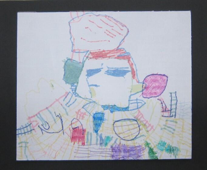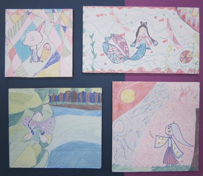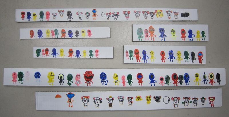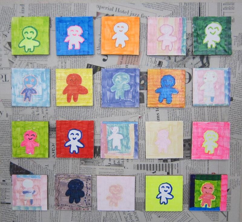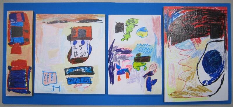 「カラフルにんげん」2年 渡辺雄昴 「はこにぺたぺた」2年 筒井天花
