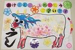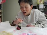 学習室は、くろしお神社が奉られ、門松や獅子舞の置物などが飾られてお正月の雰囲気でいっぱいです。羽根つきをして×の折り紙を顔に付けられて面白がる人やすねる人、凧揚げを楽しむ人、書き初めに勤しむ人もいました。また、合同餅つき大会では、「ぺったんこ、ぺったんこ」と掛け声を掛け合いながら餅に見立てた綿をつきました。最後は本物の餅に触れて粉だらけになりました。