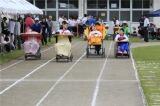 5月17日に行われたミニ体育祭では徒競走を行いました。赤・白に分かれて、熱い戦いを繰り広げました。自分の手でスイッチを押したり叩いたりしてバイクや車を動かし、順位を競いました。結果は赤が5点、白が4点でミニ体育祭では赤が勝利を収めました。