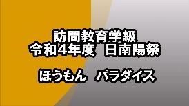 訪問教育学級の発表は、「天岩戸~愛泉会 高天原物語~」という題目で、神話を題材にした演劇をしました。今年は5年ぶりに本校に来て日南陽祭に参加することができました。学校の友達や先生方にも会うことができ、とても有意義なスクーリングになりました。