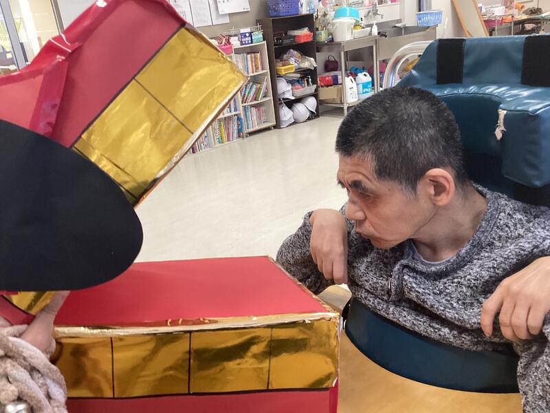 寒い日が続いた2月でしたが、訪問教育学級の児童生徒は元気に学習に励んでいます。今月は節分に関する学習に取り組みました。