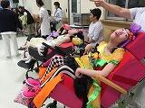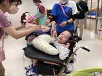 午前の部と午後の部に分かれて、学校の児童生徒と病院の患者さんが一緒になって楽しみました。内容は「すいかわり」「ボウリング」「「さかなつり」「おばけやしき」です。