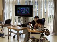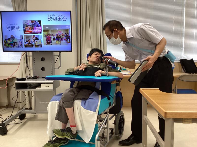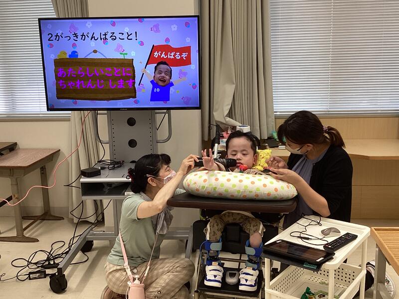 各学部の歓迎会と、運動会の結団式では、学校と病院をリモートでつないで参加し、学校似通う児童生徒の皆さんとの交流学習もできました。