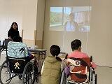 訪問教育学級は、無事に2学期を終えました。終業式では、校長先生から2学期の振り返りや冬休みの過ごし方について、写真やイラストを交えてお話がありました。児童生徒代表1名が、スイッチを使ってタブレット端末を操作し、2学期の頑張ったことを発表しました。たくさんの笑顔と拍手に包まれた温かい式になりました。