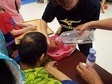 健康を維持するためには、丁寧な手洗いや歯磨きをすることによって「清潔な体」を保つことが大切であることを学びました。健康でいなければ、遊ぶことも好きな物を食べることもできなくなるという話を、みんなとても真剣に聞いていました。じっくり職員の話を聞いた後はさっそく実践!