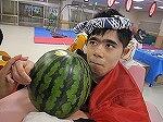 棒を何回振っても、なかなかすいかが割れずに残念がる生徒やすいかに当たって大喜びする児童もいて大変盛り上がりました。