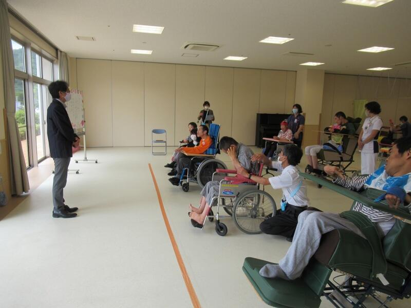 高等部2年生、3年生は本校での体育祭に参加し、小学部生、中学部生、高等部1年生は愛泉会日南病院の訓練室で、ミニ体育祭を実施しました。