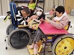まずは手洗いです。ハンドソープをつけて職員と一緒にお湯の中で手をゴシゴシキュッキュッ。しっかり洗った後は、指先を動かして手洗いの感触をかみしめている児童や手がさっぱりして笑顔を浮かべる生徒もいました。