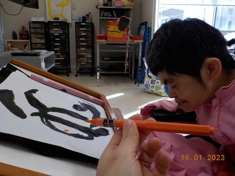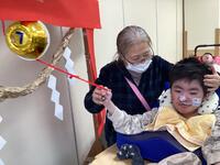 在宅の生徒は、本校の高等部とリモートで今年の目標を発表して交流を楽しんだり、書初めやかるた遊び、豆まきをしたりして学習に取り組んでいます。