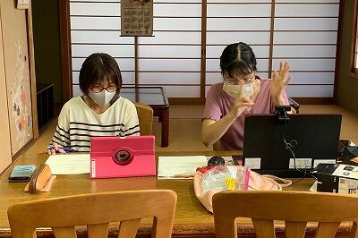 在宅の生徒は、高等部のクラスとのオンライン交流を毎回楽しみにしています。夏休みの思い出発表と来月行われる日南陽祭に向けての事前学習を一緒に行いました。