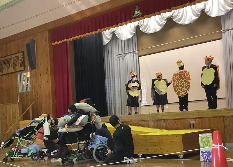 また第二部では、昔話と雅楽を合わせた曲の演奏がありました。特別に作られた楽しい曲に合わせて、昔話の読み聞かせをしてくださり、児童生徒、そして職員も皆聴き入っていました。日常生活ではなかなか感じることのない、「雅な世界」に浸ることができました。