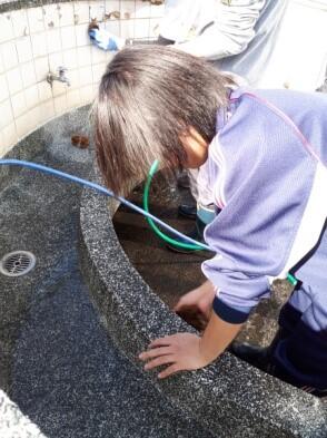 高圧洗浄機やたわしで汚れをきれいに落とし、ペンキで塗装します。仕事を分担、協力しながら自分たちで汚れを見つけては磨き、塗装していく姿は本当に頼もしく感じます。
