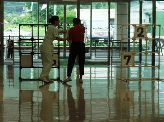例年ですと、1階ロビーにみんな集合して実施していたのですが、今年は、病院工事の関係でロビーが使えなかったため2回に分けて実施しました。
