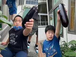 生活単元学習で5月に夏野菜(トマト、ナス、ピーマン)を植えました。子どもたちが毎日、水やりを行ってナスとピーマンが大きく育ったので収穫しました。夏野菜が大きくなる様子を見て収穫を心待ちにしていた子どもたちだったので、収穫できたときは大喜びでした。トマトも順調に育っているので収穫が楽しみです。