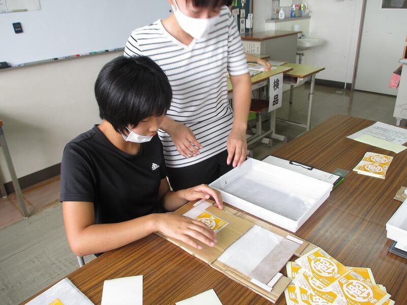1年生は校内で、企業や店舗からいただいた仕事を通して働く意識を育てました。