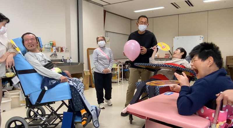 準備体操やボッチャを通して体をたくさん動かし、散歩して外気を存分に感じ、最後は、疲れた体を光遊びでゆっくりと癒しました。