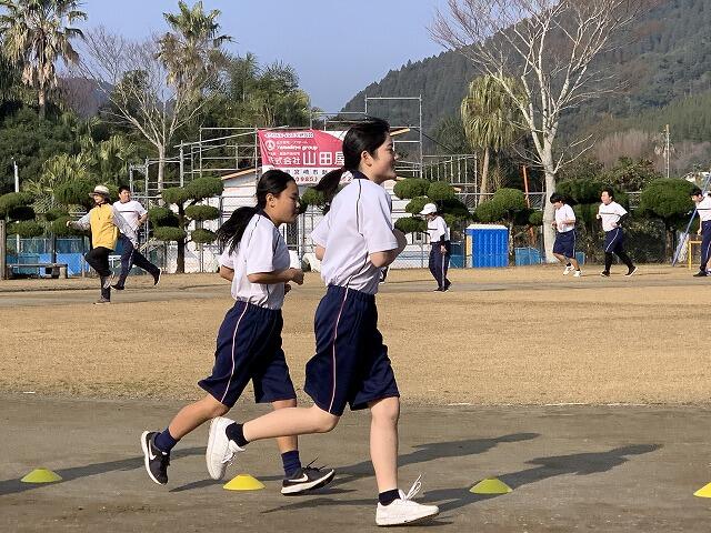 体育では長距離走を頑張っています。自分の目標を決めて毎時間一生懸命、運動場を走っています。