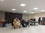 10月27日の日南陽祭に参加する予定でしたが、訪問教育学級の児童生徒は都合で参加できませんでした。その代わりに、1か月後の11月28日、愛泉会日南病院の療育訓練室にて発表会を行いました。練習した成果をたくさんの児童生徒や保護者の前で発表することができました。発表後には、小中学部による歌やダンスの発表や、写真撮影があるなど、交流を深めることもできました。