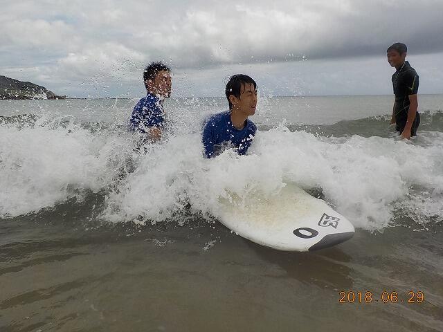 6月29日(金)は、待ちに待った鵜戸中学校との交流及び共同学習で、サーフィンを通しての交流でした。全国でも珍しいサーフィンの授業に取り組んでいる鵜戸中の生徒が、この日は、日南くろしお支援学校の生徒にサーフィンを教えてくれました。サーフィンを通して、生徒同士の笑顔あふれる自然な交流がとても印象的でした!