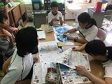 「リサイクル班」では古紙の分別やメモ帳作り、また、ペットボトルのラベル剥がしやキャップの洗浄などを行いました。