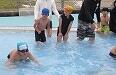 水の中に入って、バシャバシャと水しぶきをあげて、