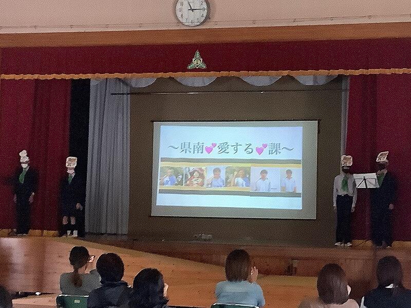 高等部1年生は、「私たちの町 日南 発見!飫肥の町」と題し、1学期校外学習で学んだ飫肥の文化や歴史これまで受け継がれてきた特産品をまとめ劇にして発表しました。1年生全員で踊った「泰平踊り」は練習を重ねてきた成果を出せ、大好評でした。