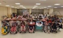 卒業を祝う会は病院内で行います。在校生や本校を卒業した先輩方、看護師さん、病院のスタッフさん、保護者の皆様も駆けつけてくださり、高等部卒業生をたくさんの人たちでお祝いをしていただきました。在校生からの卒業記念プレゼントやメッセージがあり、嬉しい一日になったことと思います。
