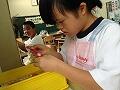 食品加工班では、喫茶(休憩のお茶の準備・片付け)やジャム作りに取り組みました。ジャムは、交流相手の東郷小中学校7年生のみなさんからいただいた金柑で作りました。