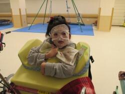 病院でハロウインパレードをしました。授業の中では、ハロウインがどんな祭りなのかを絵本で見たり、ハロウインの仮装を自由にした後、病院の中をパレードして歩きました。リハ室、地域連携室、警備室などに立ち寄りました。スタッフに貰った飴やお菓子を大事にかごの中へ入れて、教室まで持ち帰りました。ちょっとだけ味見をしたり、匂いをかいだりしました。みんなとても満足そうな表情をしていました。