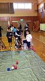 交流では、ジャックボール(白のボール)に、自分や友達のボールを近付けることができた時には大きな歓声が上がったり、グループ内でハイタッチするなど大変盛り上がりました。また、投げることが難しい友達には、東郷小の友達がスロープを持ってくれるなど協力しながらボッチャに取り組む姿も見られ、貴重な時間になりました。