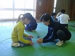 ぽっくり、こま、羽根つき、お手玉の四つのコーナーに分かれて、時間いっぱい、楽しく遊びました。子どもたちは、経験の少ない昔の遊びにも、講師の方にコツを教えてもらったり、友達と競ったりしながら、生き生きと取り組んでいました。講師の方の凄技に、子どもたちは釘付けになる場面もあり、貴重な時間となりました。まだまだ寒い日が続きますが、たくさん遊んで寒さを乗り越えてほしいと思います。講師のみなさん、ありがとうございました。