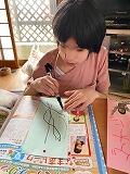 写真は、病院と在宅での授業の様子です。在宅で学習している生徒は、今週、はさみや、のりを使って七夕飾りを作ったり、花紙の感触を楽しんだりしました。これまでは教師と一緒にペンを握って短冊に願いを書いていましたが、今年は自主的に一人でペンを握り、願いを書くことができました。頑張って、褒められて、達成感でいっぱいの笑顔です。