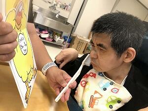 歯磨き模型を使って、歯と歯の間にたまった汚れをブラッシングする練習等に取り組みました。また、「はみがきあそび」という本の読みきかせを行いました。ゆうちゃん、犬、猫、かいじゅうなどの登場人物が、お菓子やご飯を食べたら歯を磨く場面をよく見ました。大切な歯と口の健康について学びました。