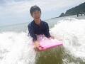 れました。鵜戸小中学校近くの海岸でサーフィン体験をし