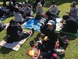 お待ちかねのお弁当タイムは庭の芝生の上でみんなで「頂きます!」みんな満面の笑み。