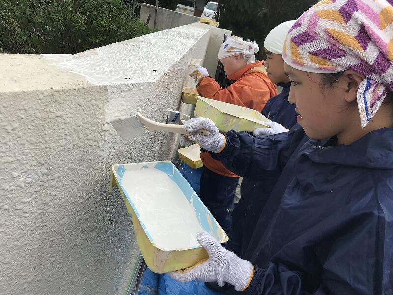実習中、生徒達は「くろしお工房」の社員として働きます。校内では、美化班、リサイクル班、喫茶班の3班に分かれて働きました。美化班は校門のペンキ塗りや風田浜の清掃など、リサイクル班はペットボトルや古紙の分別など、喫茶班は働く友達のために喫茶室を開いて接客などを行いました。今年度2度目の現場実習は、1回目以上の活気で、生徒達が生き生きとした表情で、元気に意欲的に働く姿をたくさん見ることができました。