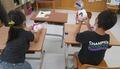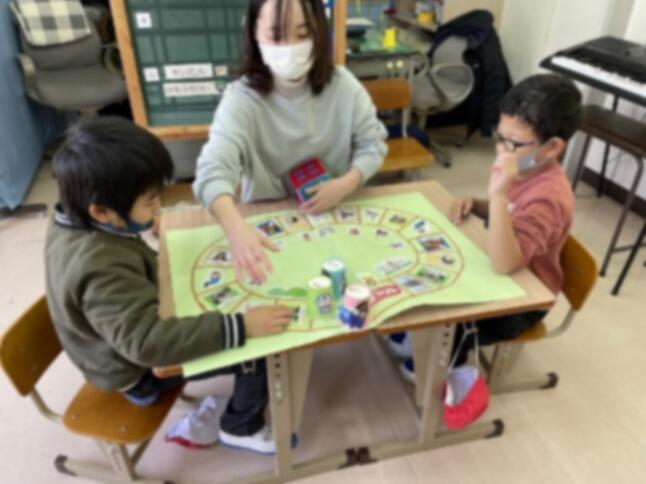質問タイムでは、「今日の給食は何ですか?」、「学校に先生は何人いますか?」と質問をし合うなど