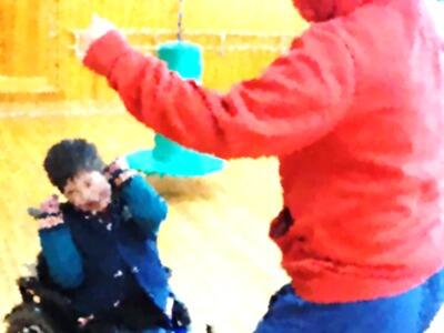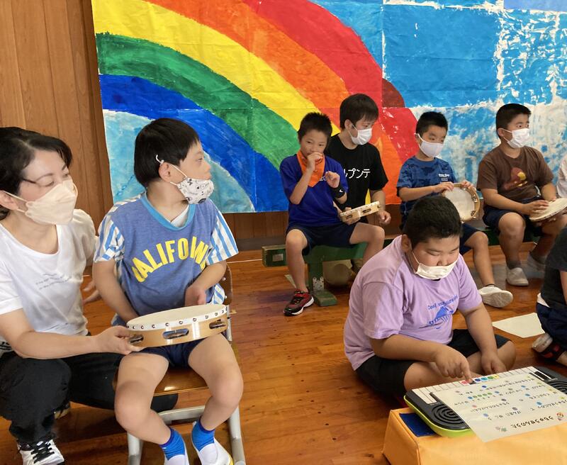 徐々に笑顔になって、体や車椅子を動かし、ノリノリで楽器の音色を感じたり、効果音付の絵本の世界に浸ったりしていました。