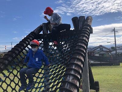 11月11日(木)に3年生の校外体験学習がありました。場所は、祝吉郡元公園でスクールバスに乗って行きました。子供たちは事前学習からずっと楽しみにしている様子で、バスの乗り方や公園でのマナー・きまりを守って、仲良く遊ぶことができました。園内には緩やかな丘の上に、木製の大型複合遊具やトンネル、ブランコなど沢山の遊具が設置されています。気に入った遊具で遊ぶ児童や広い芝生を職員と散歩する児童など、それぞれ楽しんでいました。どの児童もニコニコ笑顔で楽しく活動に参加している姿がとても印象的でした。感染症でなかなか校外に行くことができなかった分、その喜びはひとしおでした。