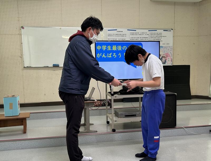 受検の日まで、面接のマナーや身だしなみなどを意識して、練習を繰り返し行ってきました。また、キャリアパスポートの作成を行う中で、自分の気持ちや思いなど伝えたいことを整理したりしました。こうした皆さんの日々の頑張りがきっと面接官の先生にも伝わったのではないかと思います。