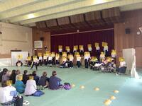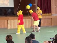 例年通り上学年(4・5・6年生)がおもてなし係として招待状を作って配り、ゲームの準備やリハーサルに頑張って取り組んで来ました。当日招かれた下学年(1・2・3年生)は、招待状を手に会場に入り、スタンプをポンと押してもらうと手渡されたはっぴを羽織り、魚釣りや的当てのゲームを楽しみ、お祭り気分を存分に味わいました。