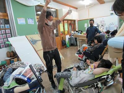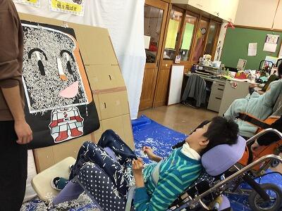 「生活単元学習」では、四季折々の題材を用いて四季の変化を感じとる学習を行っています。今回は、雪に見立てたシュレッダー紙を触ったり、丸めて投げたりしながら、ふわふわ舞う雪の白さや感触に親しみました。特製の「雪玉とばし装置」を使って、どんどん雪玉を飛ばします。的に向かって、みんなで協力しながら雪玉を飛ばして出現したのは・・・白くてかっこいいあの人!!冬ならではの雪遊びを楽しむことができました。