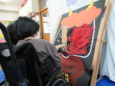 これまで四季折々の題材を用いて取り組んできた生活単元学習。1月後半から2月初めにかけてのテーマは「節分」ということで、シュレッダー紙を使った鬼の制作や鬼退治の豆作り、自分の心の中の「やっつけたい鬼」を決める活動等に取り組み、来たる節分に向けて気持ちを高めていきました。