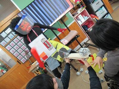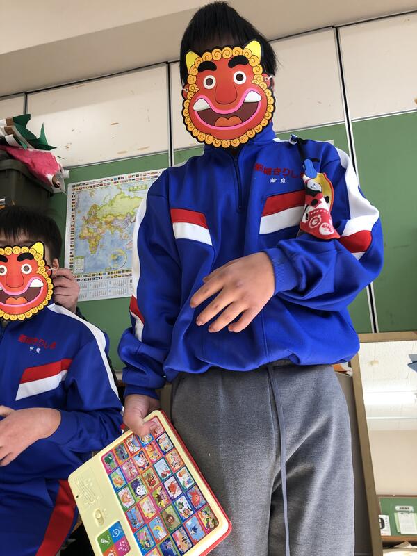 そして迎えた2月3日…突如教室に現れた鬼はとても手強かったですが、特製「豆飛ばし装置」を使って何度も上手に豆を当て、何とか退治することができました。それぞれの心の中の鬼もきっといなくなったと思います。