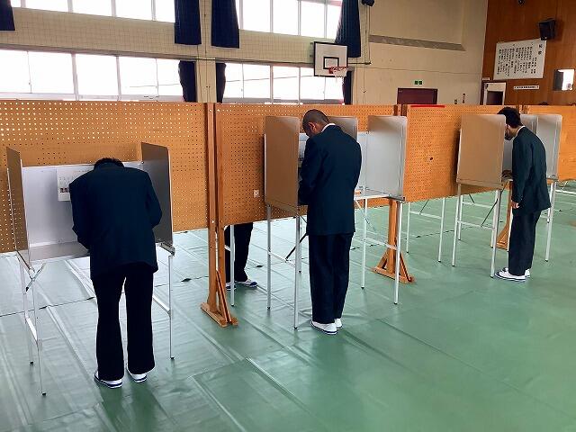 投票の直前には、各教室で政見放送の動画を視聴し、12名の立候補者の熱い想いを聞くことができました。
