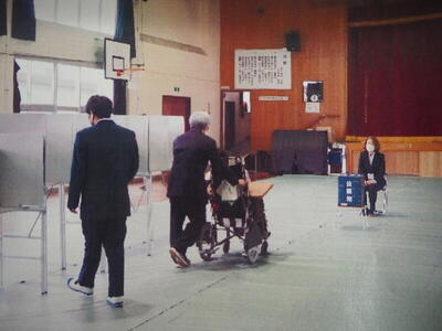 2月10日、本校の体育館で生徒会役員選挙の投票が行われました。実際の選挙で使用している投票箱や記載台を使い、静かで緊張感のある雰囲気の中での投票になりました。会場では、中学部、高等部の生徒が、次々に受付で投票用紙を受け取り、自分で選んだ候補者の名前を書き、投票箱に入れる様子が見られました。期日前投票や、投票用紙に文字を記入することが困難な生徒のための、代理投票も行われました。投票の前には動画配信で8人の候補者が政見放送を行い、一人一人が、「こんな学校にしたい」という思いを真剣に伝えることができました。生徒会役員に選ばれた皆さんが、これから、よりよい学校を目指して頑張ってくれることを楽しみにしています。